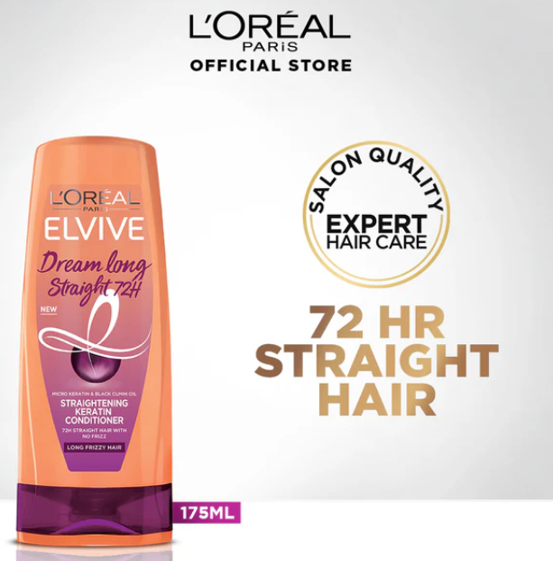 Transform your hair with the L'Oreal Paris Elvive Dream Long Straight 72H Straightening Keratin Conditioner. This luxurious conditioner is your secret weapon for achieving beautifully straight, smooth, and manageable hair that lasts. Say goodbye to frizz and hello to sleek, salon-worthy locks for up to 72 hours!