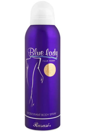 RASASI BLUE LADY POUR FEMME DEODORANT BODY SPRAY is designed to help you feel confident and refreshed all day long. Featuring a long-lasting, pleasantly aromatic scent, this deodorant spray is perfect for your daily hygiene routine. Enjoy the refreshing fragrance and soothing sensation of this 200ml body spray.