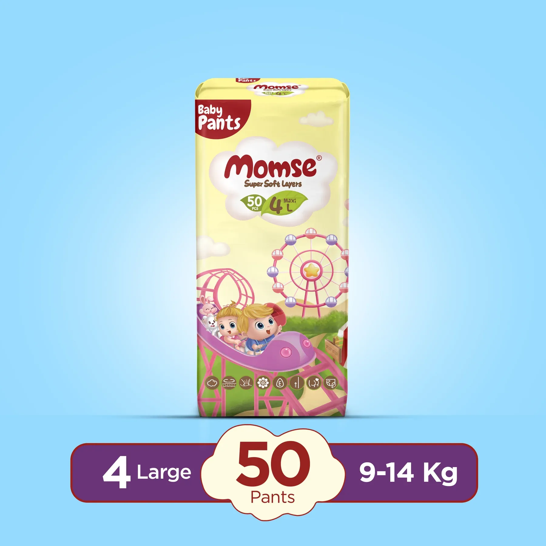 Momse Baby Diapers , L, No. 4, 9-14Kg, 50-Pack