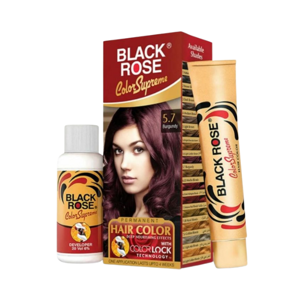 Black Rose Hair Colour No. 5.7 Burgundy offers a rich, deep burgundy shade that adds vibrant, long-lasting colour to your hair. Its ammonia-free formula helps protect and nourish hair during colouring. Ideal for those seeking a bold yet elegant look.